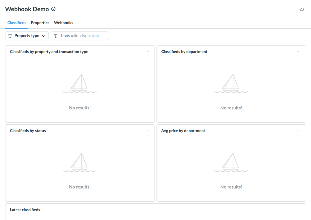 webhook_events: journal d’ingestion des webhooks reçus (avec rétention)classifieds: lignes aplaties issues des payloads Immoteur (classified-notification/classifieds-export)classified_images: une ligne par image (liée àclassifieds)classified_price_history: une ligne par changement de prix (liée àclassifieds)